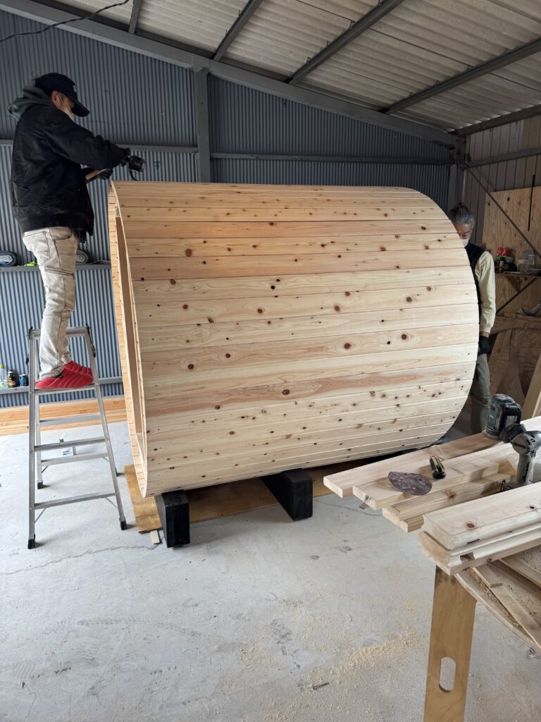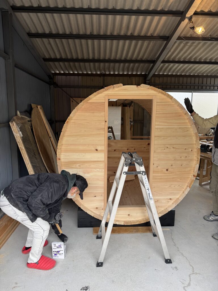 檜バレルサウナ制作中♪